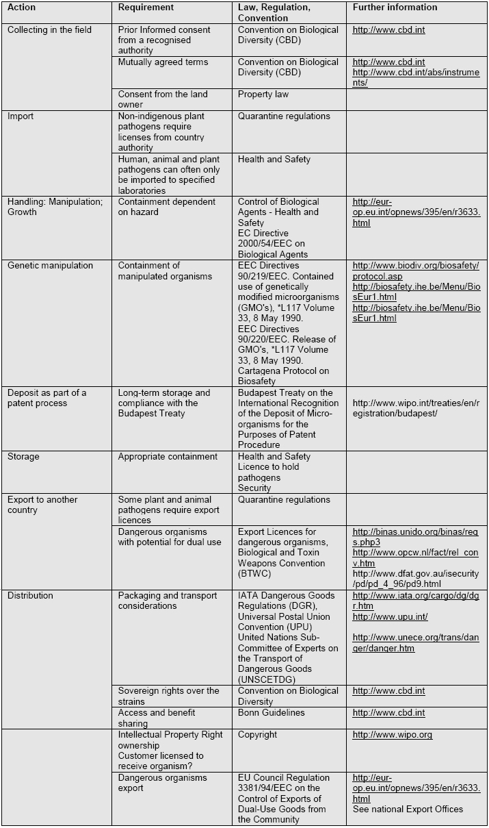 distribute such organisms (see EBRCN legislation document on WFCC website).